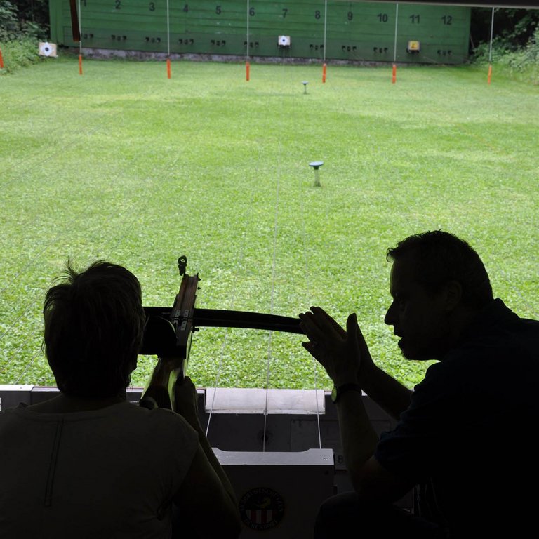 Natürlich war ich neugierig, wer denn alles an diesem Schiessen teilnimmt. Nach und nach trafen auch die anderen Schützen ein und langsam kam Wettkampfstimmung auf. Von Thun waren leider nicht so viele anwesend, umso mehr strengten wir uns an, gut abzuschneiden. Im Schützenhaus erklärten uns zahlreiche Helfer die Handhabung der Armbrust. Diese Waffe ist nämlich etwas ganz anderes, als ich es von Thun her kenne. Hier gab es sogar eine Wasserwaage, auf die man zusätzlich achten musste. Nach einigen Probeschüssen galt für mich dann 'Guet Schuss'.